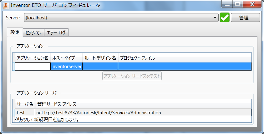 アプリケーション サーバを追加するには、[クリックして新規項目を追加します]をクリックします。次のイメージに示すように、サーバ名、および管理サービス アドレスを入力します。[Enter]を押して変更をコミットします。