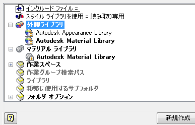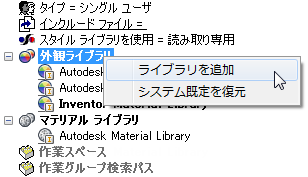 - [外観ライブラリ]/[マテリアルライブラリ]ノードを右クリックして、[ライブラリを追加]を選択します。