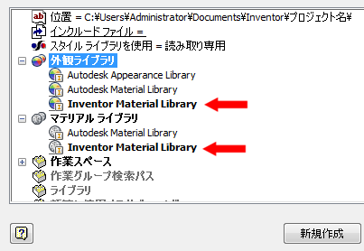 - My_InventorMaterialsLibrary.asklib を InventorMaterialLibrary.adsklib に名前を変更します。