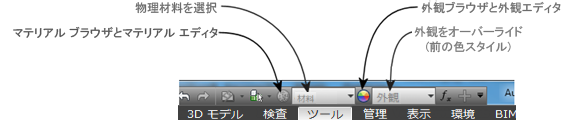 - QAT で、[マテリアル ブラウザ]をクリックします。