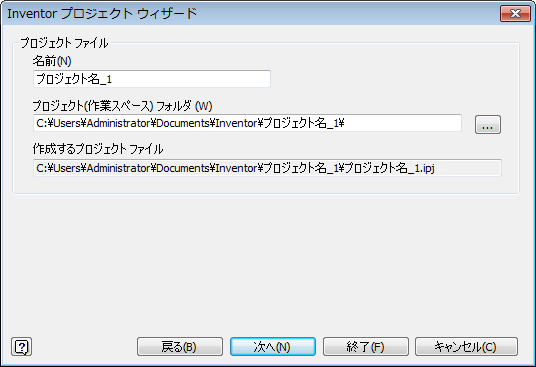 - Inventor を終了して再起動する必要があります。Inventor を再起動した後、プロジェクトは次の図のようになります。