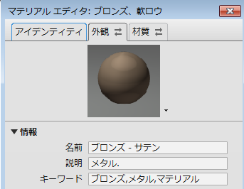 新しいタブ形式のインタフェースを使用することで[マテリアル エディタ]ダイアログ ボックス内を簡単に移動できるようになりました。このインタフェースでは、さまざまな材料のアセットやそのプロパティを区別することもできます。