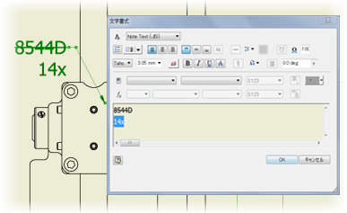 Inventor で AutoCAD DWG ファイルを開くと、インポートした文字は読み取り専用ですが、元の書式設定が保持されます。AutoCAD で Inventor DWG ファイルを開くと、文字の書式は保持されます。