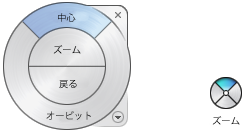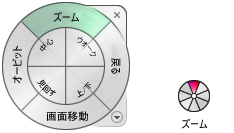 このホイールを使用すると、基本的な 2D ナビゲーション ツールにアクセスできます。スクロール ホイール付きのポインティング デバイスがない場合に便利です。