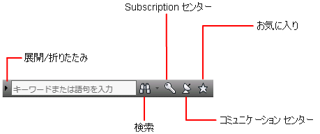 情報センター(既定では Inventor 画面の右上にあります)には、多くの情報リソースに直接アクセスするためのアイコンがあります。
