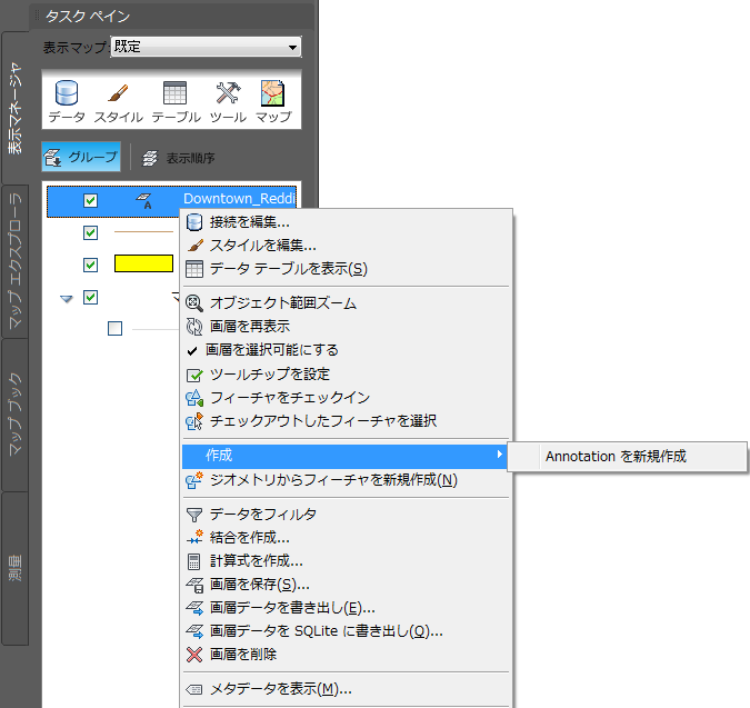 テキスト画層はデータ ストアであるため、変更内容を他のマップに適用するには、変更内容をチェック インします。