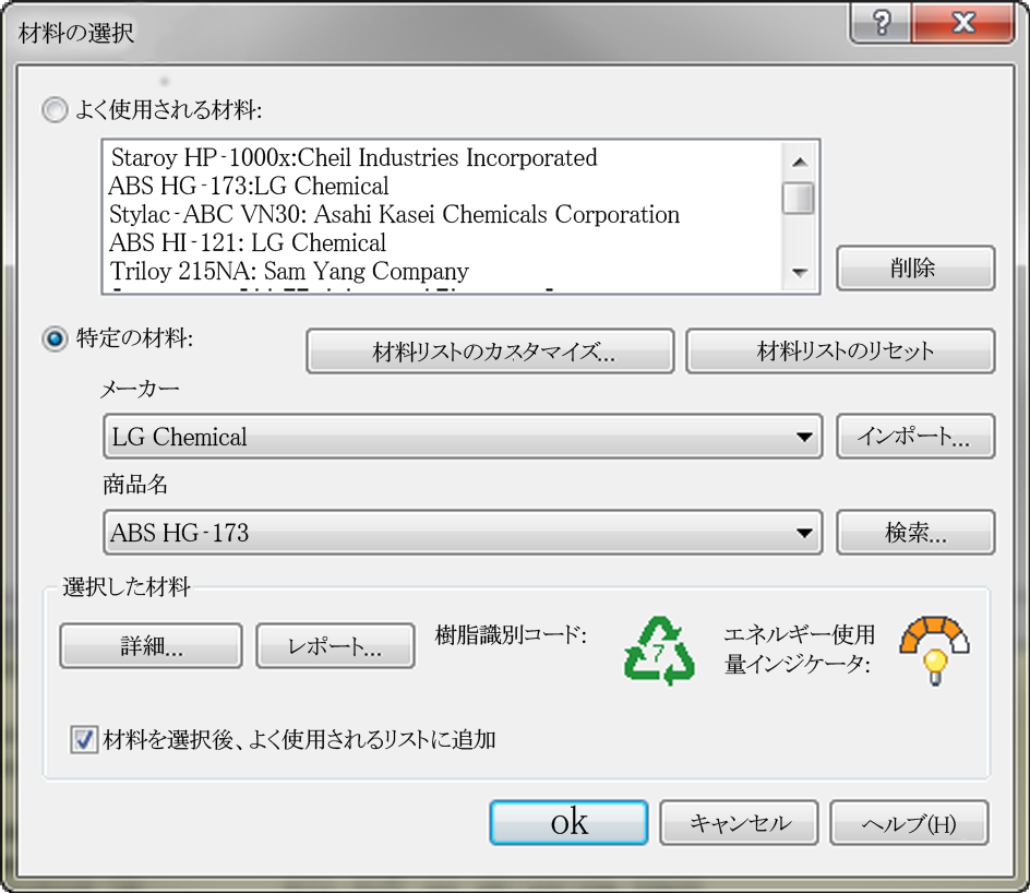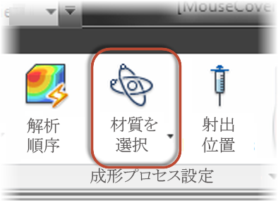 [ホーム] > [成形プロセス設定] > [材料の選択]をクリックします。