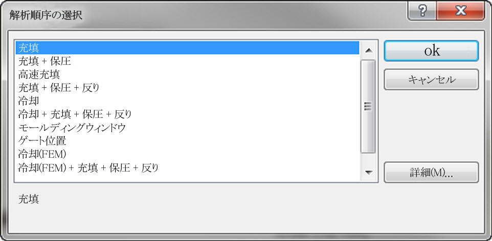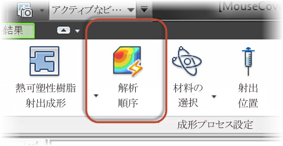利用可能な他の解析順序を確認するには、[ホーム] > [成形プロセス設定] > [解析順序]をクリックします。解析順序が[充填]であることを確認します。