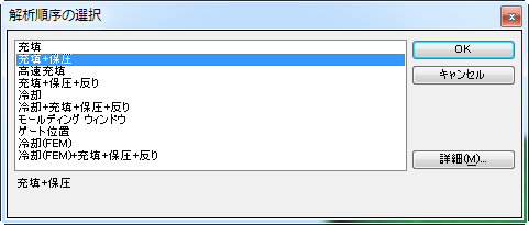 このタスクでは、解析順序を充填+保圧に設定します。