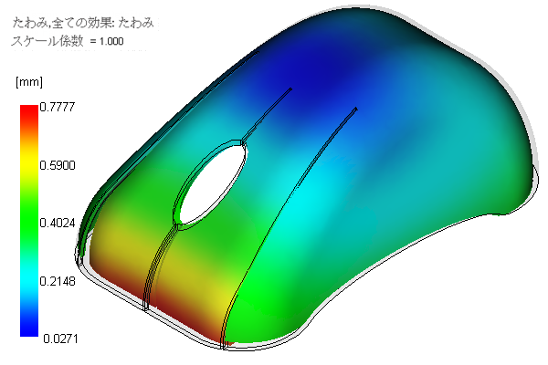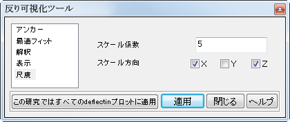 このツールは、変位量の確認を容易にするため、結果を 5 倍の大きさに拡大します。