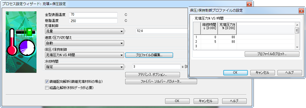 [金型表面温度]が 70 ℃であることを確認します。