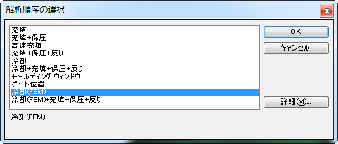 このタスクでは、解析順序を冷却(FEM)に設定します。この順序は、金型を作成できるように設定する必要があります。