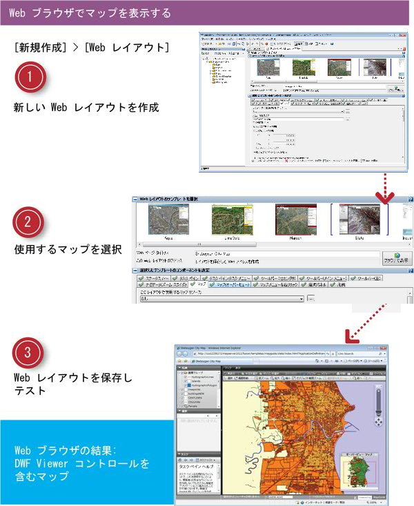 Web ブラウザが起動して、フレキシブル レイアウト ビューアにマップが表示されます。
