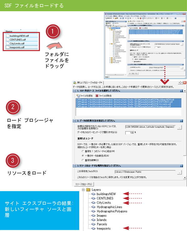 - Windows エクスプローラで、C:\Program Files\Autodesk\Autodesk Infrastructure Studio 2016\Sample Data\SDF フォルダにナビゲートします。