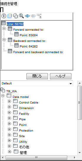 [接続の管理]エリアには、選択したフィーチャに定義された接続と、選択したフィーチャから定義された接続がすべて表示されます。ルート ノードは選択されたフィーチャです。