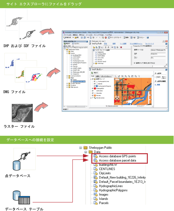 Infrastructure Map Server でマップを作成する前に、ソース データを準備する必要があります。ソース データを使用できるようにするには、次の 3 つの方法があります。
