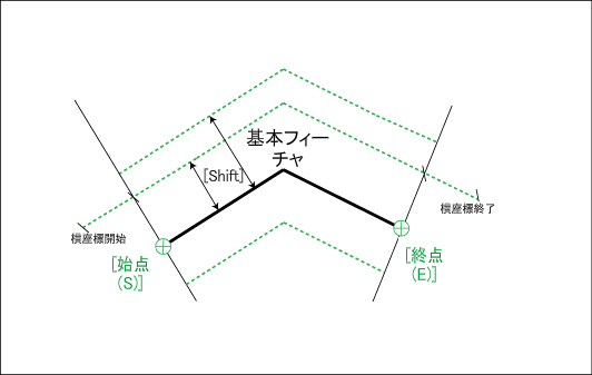 機能を使用して、ラインを既存のラインに基づいてオフセットとともに計算します。