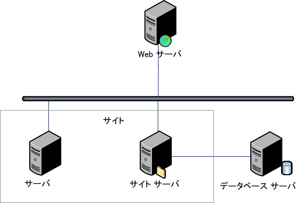 図では、サイトに 2 つのサーバがあります。そのうち 1 つはサイト サーバです。サイト サーバにはリソース リポジトリがあります。 またサイト サーバは、すべてのデータベース サーバまたはサーバに接続します。