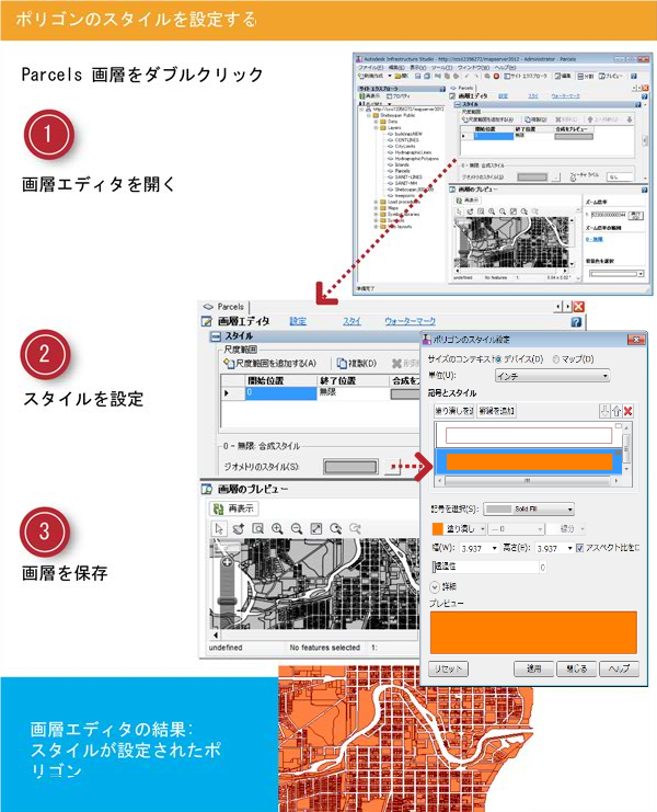 標準の画層スタイルを画層エディタで設定するスタイルに使用します。複合シンボルおよび合成スタイルをサポートする