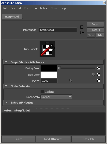 class InterpNode : public MPxNode { public: InterpNode(); virtual ~InterpNode(); virtual MStatus compute( const MPlug&, MDataBlock& ); static void * creator(); static MStatus initialize(); static MTypeId id; protected: static MObject InputValue; static MObject color1R,color1G,color1B,color1; static MObject color2R,color2G,color2B,color2; static MObject aNormalCameraX, aNormalCameraY, aNormalCameraZ, aNormalCamera; static MObject aPointCameraX, aPointCameraY, aPointCameraZ, aPointCamera; static MObject aOutColorR, aOutColorG, aOutColorB, aOutColor; }; MObject InterpNode::InputValue; MObject InterpNode::color1R; MObject InterpNode::color1G; MObject InterpNode::color1B; MObject InterpNode::color1; MObject InterpNode::color2R; MObject InterpNode::color2G; MObject InterpNode::color2B; MObject InterpNode::color2; MObject InterpNode::aNormalCameraX; MObject InterpNode::aNormalCameraY; MObject InterpNode::aNormalCameraZ; MObject InterpNode::aNormalCamera; MObject InterpNode::aPointCameraX; MObject InterpNode::aPointCameraY; MObject InterpNode::aPointCameraZ; MObject InterpNode::aPointCamera; MObject InterpNode::aOutColorR; MObject InterpNode::aOutColorG; MObject InterpNode::aOutColorB; MObject InterpNode::aOutColor;