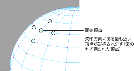 矢印キーを使用した頂点の選択には、以下の制限があります。