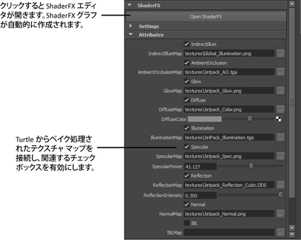 Turtle でベイク処理されたテクスチャを ShaderFX に接続するには