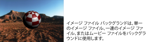 スタティック イメージ ファイル バックグラウンドは、単一のイメージ ファイルをバックグラウンドとして使用します。このバックグラウンド イメージは、アニメーションの中で変化しません。