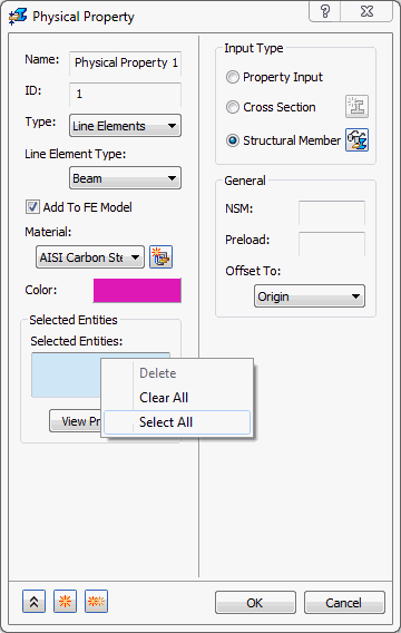 - [選択した構造メンバー]選択ボックスですべての構造メンバーを選択するには、選択ボックス内を右クリックして[すべて選択]をクリックします。これは長方形選択を使用するか、モデル内の構造メンバーを個別にクリックして実行できます。