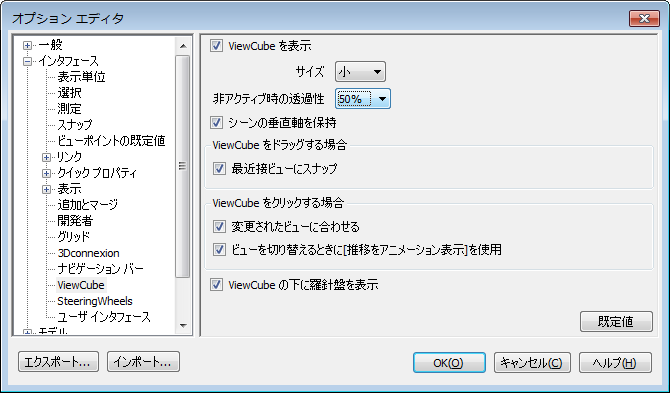 ViewCube が非アクティブなときの透過性をコントロールするには