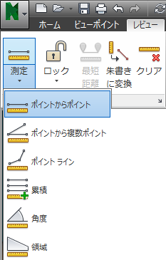 測定ツールを使用すると、モデル内のアイテム上の点間の測定を実行できます。測定は、すべて表示単位で行われます。測定ツールは[レビュー]タブ [測定]パネルから使用できます。