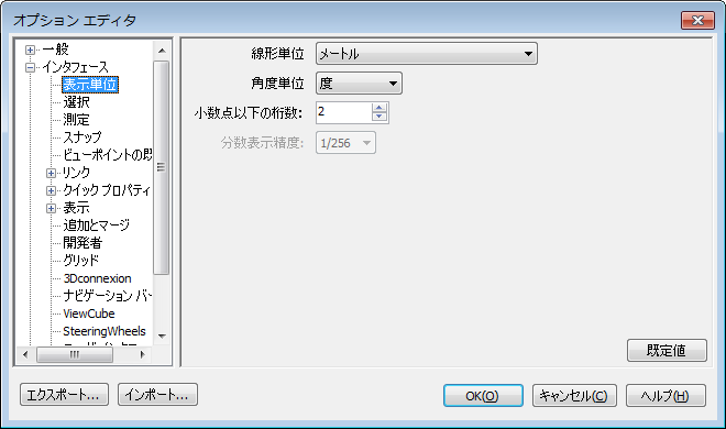 - [オプション エディタ]で[インタフェース]ノードを展開し、[表示単位]オプションをクリックします。