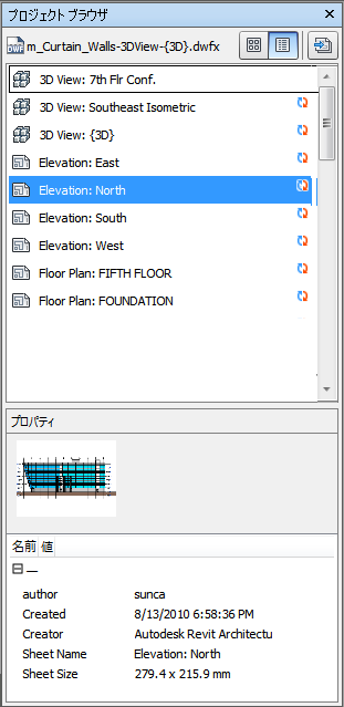 [プロジェクト ブラウザ]はドッキング可能なウィンドウで、現在開かれているファイル内のすべてのシート/モデルの一覧を表示します。