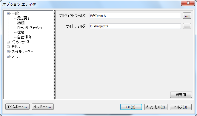 - [オプション エディタ]で[一般]ノードを展開し、[場所]オプションをクリックします。