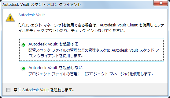 [Vault に同期]と[Vault から更新]では、確認は不要になりました。また、同期では、エラーまたは警告が発生した場合にのみ結果のダイアログ ボックスが表示されるようになりました。