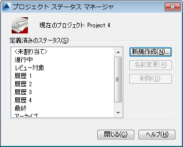 現在のプロジェクトに対して定義されているステータスが一覧表示されます。このダイアログ ボックスでは、このリストのステータスを追加、名前変更、および削除することができます。既定のステータス リストには、次のものがあります。
