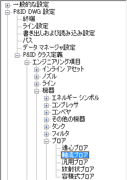- [プロジェクト セットアップ]のツリー表示で、[P&ID クラス定義]を展開します。