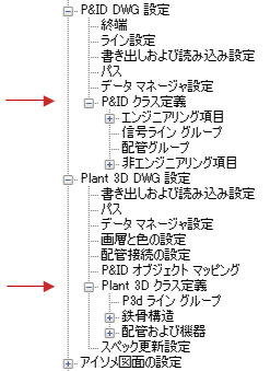 Plant 3D のクラス定義の上位レベルのグループは次のとおりです。