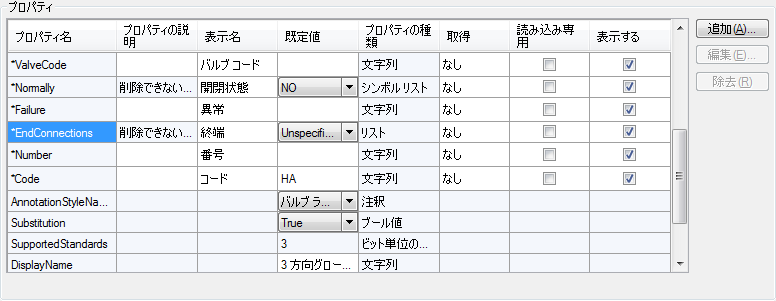 [クラス設定]ペインの[プロパティ]にある[プロパティ名]列で、[EndConnections]を見つけます。