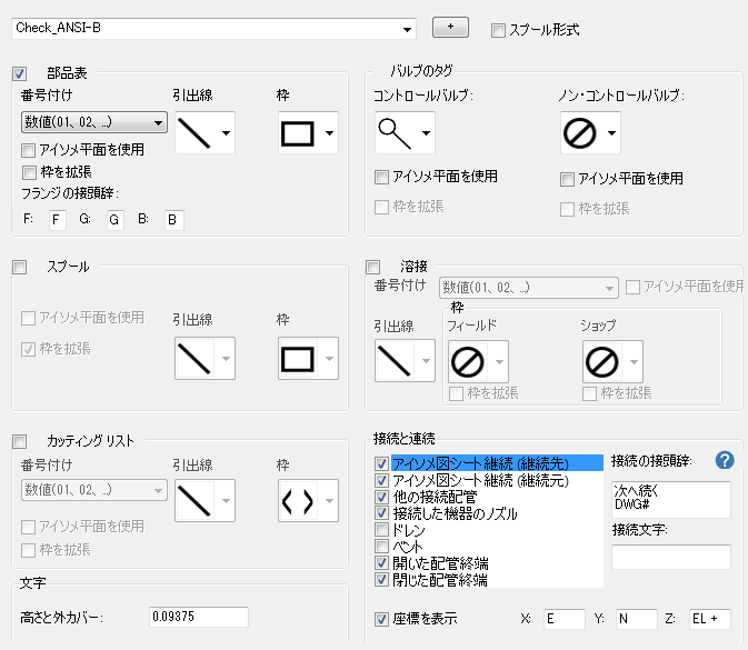 [バルブの注釈]領域で、タグ番号とともに注釈を付ける項目のチェック ボックスをオンにし、ドロップダウン リストから注釈のスタイルを選択します。