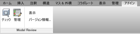 Autodesk Revit Model Review は、チェック管理の 2 つの機能に基づきます。これらの両方のツールは、リボンの[アドイン]タブ [Model Review]パネルにあります。