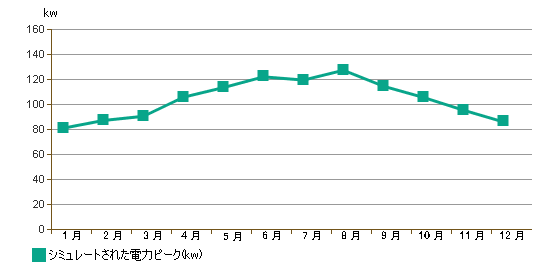 を確認する際、このチャートにはプロジェクトの月別の推定電力ピーク需要が表示されます。