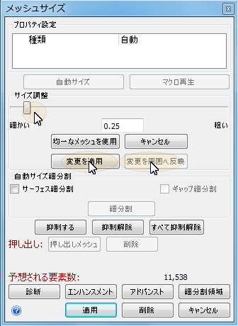 メッシュ サイズを変更するには、次のいずれかを実行します。