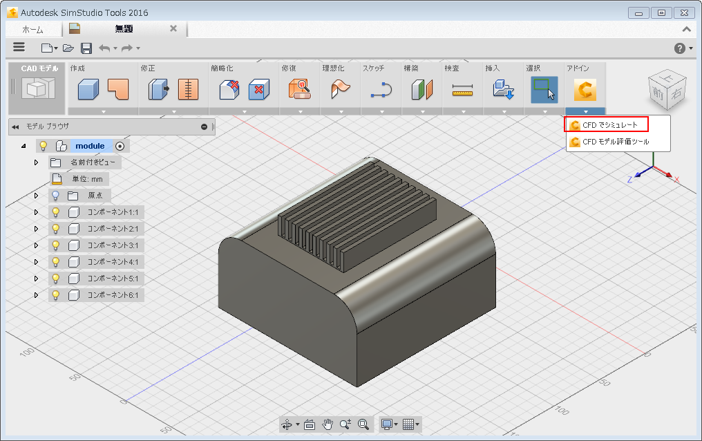 [アドイン]メニューを展開して、[CFD でシミュレートする]を選択します。