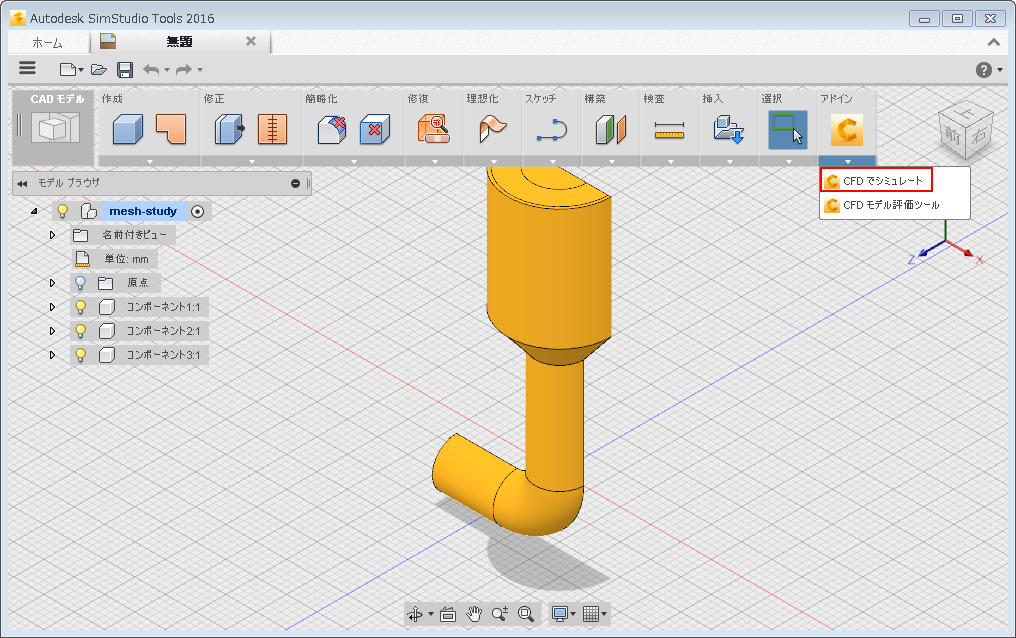 [アドイン]メニューを展開して、[CFD でシミュレートする]を選択します。