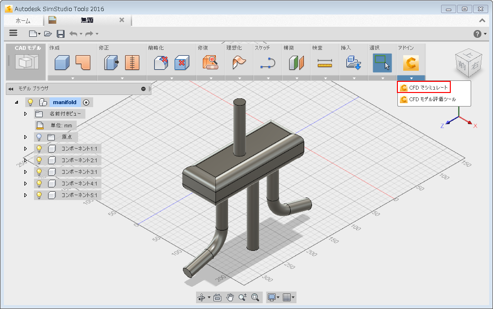 [アドイン]メニューを展開して、[CFD でシミュレートする]を選択します。