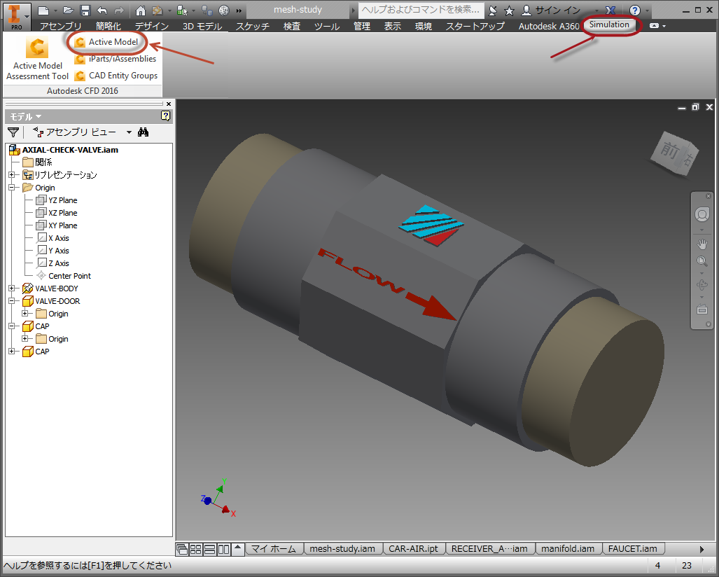 Users¥パブリック¥パブリックのドキュメント¥Autodesk¥CFD 2016¥Tutorials¥<cad>¥axial-check-valve