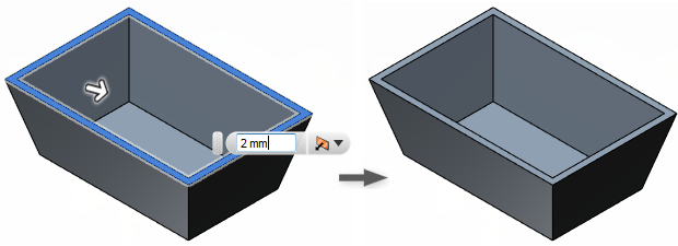 - ボディの内側または外側に向かって壁をオフセットすることができます。