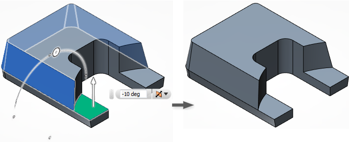 - 選択した中立面によって、面の勾配角度と抜き方向が決まります。