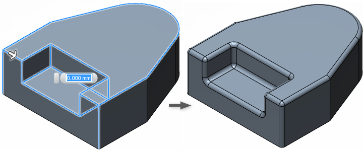 - [フィレット]ダイアログ ボックスをアクティブにするには、エッジを選択します。