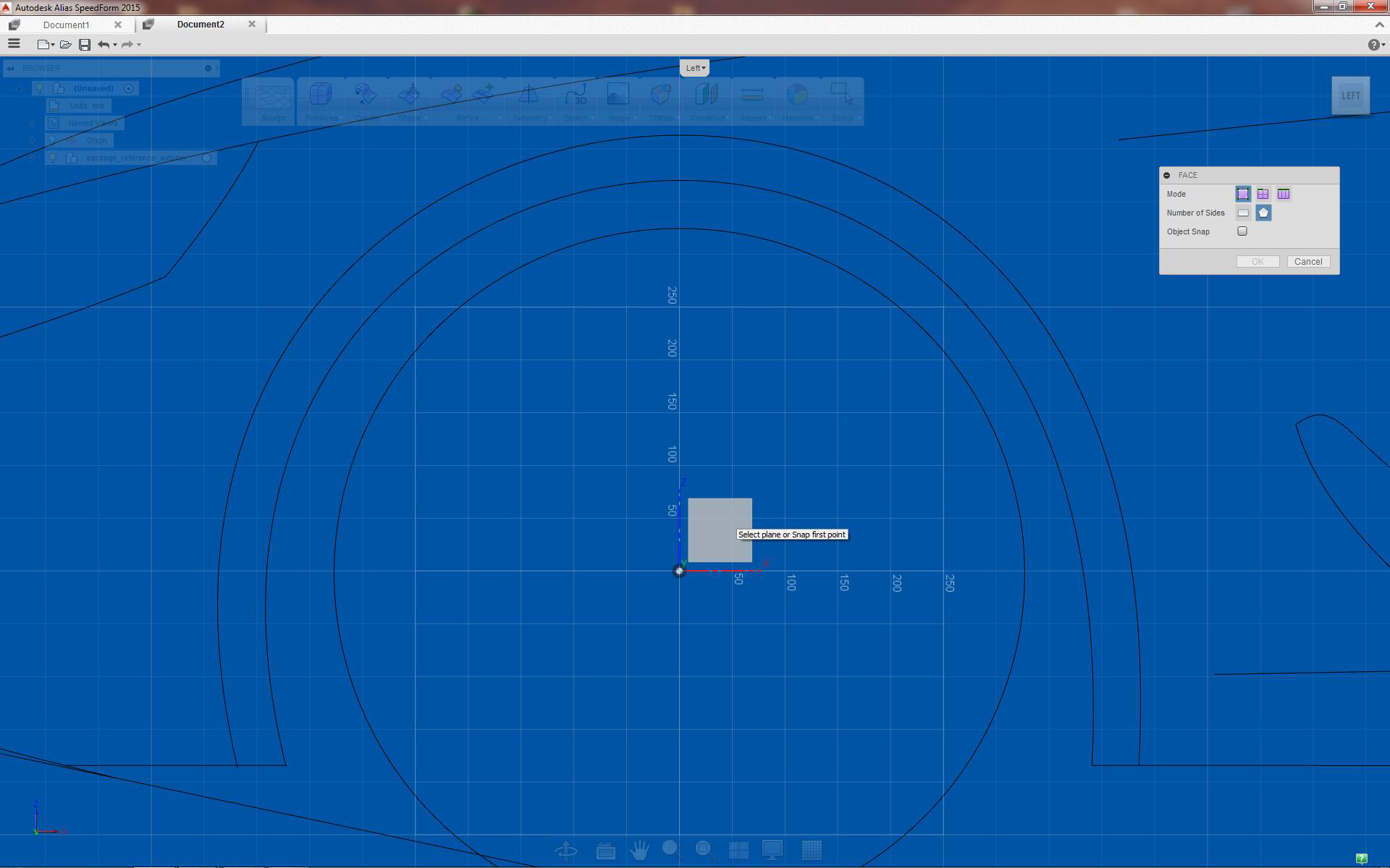 平面を設定してホイール アーチの作成を開始する(一般には X-Z 平面を使用する)